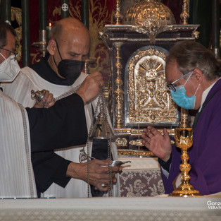 Finalizaba este segundo día del Triduo con el canto del himno a la Vera†Cruz con una Capilla adaptada a todas las medidas sanitarias y con la casi totalidad del aforo completo.