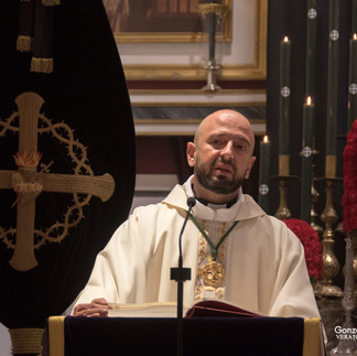 Ya a las 19:20 horas daba comienzo el rezo del Ejercicio del Triduo previo a la celebración de la Santa Misa, presidida por el Reverendo Padre Fray David María Alarcón Losa, poniendo el acompañamiento musical Raúl Álvarez, al piano, y Ruth Martínez, al violín.